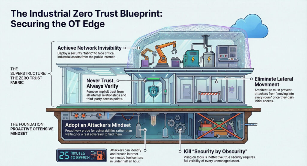 “You must remember … as many times as we win, the bad guys only get better. Our battles are just beginning!” These words conclude a graphic novel by Dr. Chase Cunningham and coauthor Heather Dahl. In “The Cynja: Volume 1,” the protagonist is the evil Botmaster. His thick, purple tentacles; sharp, black claws; and digital-looking scythe try to take down networks in the time it takes to turn the page. The concept is scary real. We sat down with Cunningham for our blog, “Stranger than Fiction: Exploring the New Battlefield at the Industrial Edge with Chase Cunningham (Part 1),” where we explored the rise of cyber threats on the industrial edge and why turning things on, crossing your fingers, and hoping your network stays safe is antiquated and risky. Cunningham, a former U.S. Navy officer who worked in cryptology with National Security Agency and Forrester street cred, now consults with international companies and public organizations. His military experience taught him two things. First, small businesses are targets for nation states because of their connective links to other things (the nature of technology is that attackers get past defenses and sprawl; it’s the difference between a break-in and a break-in-and-move-into-every-room scenario). Second, if you fail to plan, you plan to fail, underscoring Cunningham’s favorite wrong to right. He maintains that operational leaders should remove trust inside the network, first and foremost. Here, we give you three essentials for your network security strategy at the industrial edge, directly from Dr. Zero Trust himself. Essential #1: Offense Wins For OT (operational technology) leaders seeking to protect edge infrastructure, an offensive strategy increases your odds of staying secure. Dramatically. Cunningham’s perspective is clear: the advantage belongs to those who think like attackers. “Are you willing to engage in a red team operation … and let a group of hackers essentially come at you and tell you where you’ve got vulnerabilities?” If the answer is no, then he says there’s an issue right there. For Cunningham, an offense-minded strategy starts with confronting reality and actively probing for security weaknesses the same way an adversary would. That mindset is critical because, in his words, “how can you possibly defend what you don’t know about?” Industrial environments are often sprawling, with unseen or unmanaged assets. Without full visibility, attackers will exploit your most vulnerable gaps first. He frames out the risk in real time. “I could breach these folks in about 25 minutes.” The “folks” Cunningham refers to are fuel centers talking to the internet that he has, with a few clicks, identified. Even more concerning, “a lot of these have crappy usernames and passwords like admin passwords. I could go in there and change fuel controls.” The takeaway isn’t theoretical. Attackers win because they take direct, simple paths into exposed systems. Organizations that take a defensive stance, he says, don’t test potential paths themselves. Instead, they wait for an attacker to do it for them. Cunningham is equally blunt about why traditional approaches fail. “Security by obscurity is not going to keep you safe.” Piling on tools doesn’t solve it either. “If the dart board is continuously moving,” he says, “the odds of me hitting that bullseye is pretty slim.” Reactive defense cannot keep pace with adaptive threats. “Getting breached is not the big problem,” Cunningham adds. “Someone will find a way to get past whatever defense you’re putting in front of them.” If compromise is inevitable, then success depends on how quickly you detect, isolate, and respond. These safeguards come from understanding how attacks actually unfold. In industrial operations, offense wins. Organizations that continuously test, expose, and reduce vulnerabilities don’t wait for a real attacker to do it for them. Essential #2: Zero Trust Protects the Entire Network Dark actors target ICS (industrial control systems) and OT environments. Why? As mentioned in part 1 of this series, industrial infrastructure has evolved rapidly with many more entry points because of today’s ultra-connected world. The cloud, internet and mobile workforce have expanded the attack surface. As a result, attackers don’t look for targets, they look for vulnerabilities. No one is too small or too big. Successful network security strategy means moving beyond legacy perimeter security to dynamic, zero-trust strategies governed by “never trust, always verify.” The goal is to protect the entire network and build resilience against evolving threats so disruptions are eliminated. “A lot of people have been burned without a clear ROI,” Cunningham says. “There’s a unique space around IoT, IT/OT and binary-type applications. OT devices are only supposed to do one or two things and pull up data. The OT space fits well into the strategic side of the equation.” Understanding and knowing what’s going on with your devices is a good start. To Cunningham, security is much bigger than one organization. After leaving the NSA he was assigned a project around zero trust that was already underway at Forrester. He quickly realized that if he was a bad guy, zero trust would have made his life miserable. His thinking around security quickly changed. “I built a framework. I have kids. I really think that in a world where everyone is digital and in a space where we have … access to the internet and all these other things, operating securely is a fundamental human right.” Essential #3: Make Your Network Invisible Through a Zero Trust Mindset Attackers can’t exploit a network they cannot see. Yet, according to Cunningham, there’s a critical step before you get to actual technology tools: embracing a zero-trust mindset so people inside your organization become, well, skeptics. Zero trust is not a single product or 
